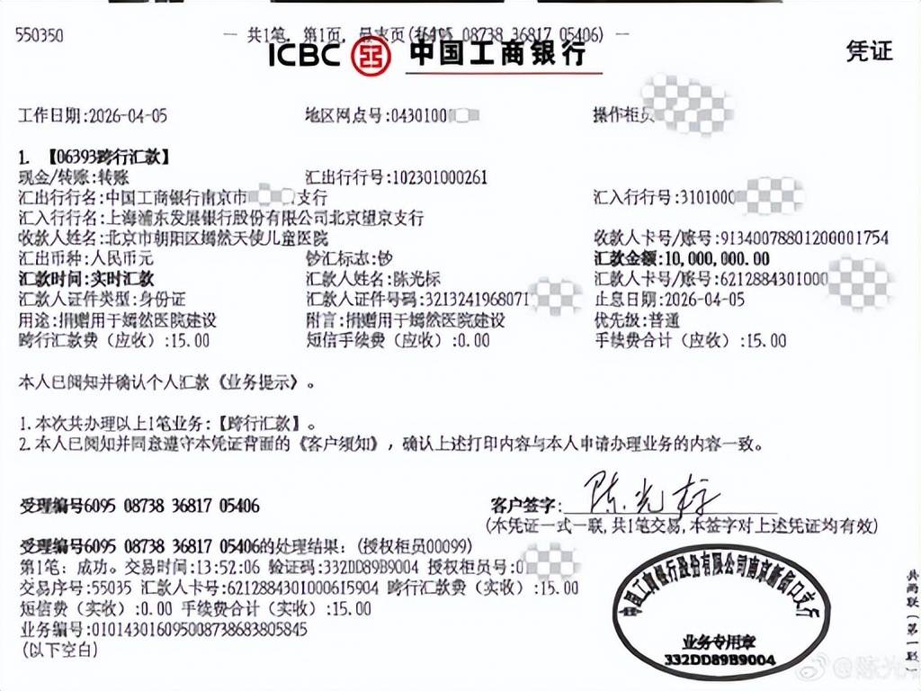 陈光标1000万已到账,他践行了承诺