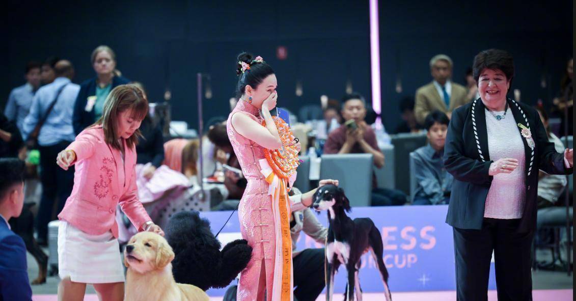 但结果是她牵着狗在赛场上跑了一整天,一口气拿下了puppy组全场总冠军第一名三次、第二名两次。 这只11个月大的幼犬还在组别赛中越级挑战成年组,八次战胜了日本排名第一的中型贵宾犬。 这个成绩直接刷新了中国选手在该赛事的历史最佳纪录。