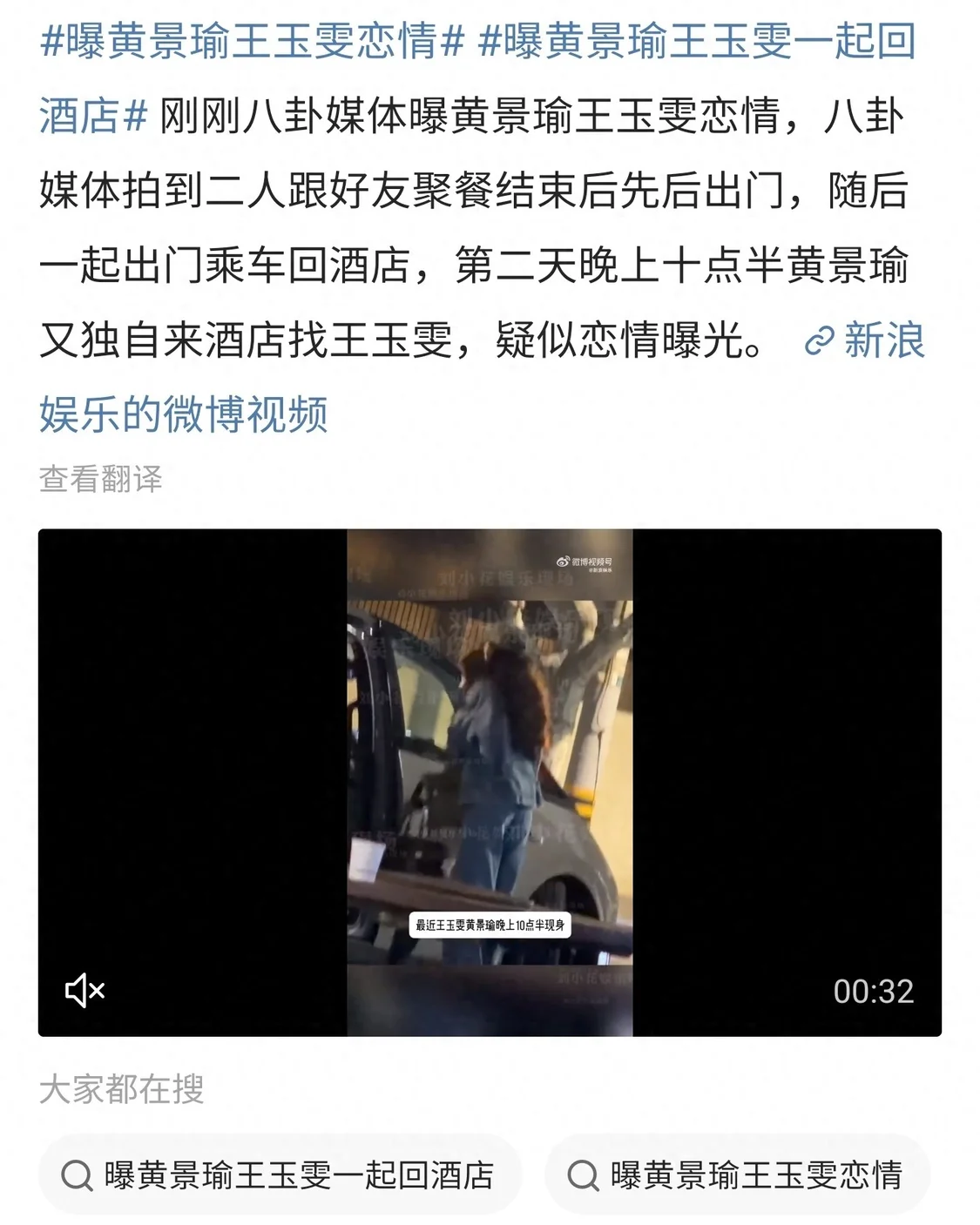 更离谱的是,第二天晚上十点半,黄景瑜又独自一人去了王玉雯住的酒店!