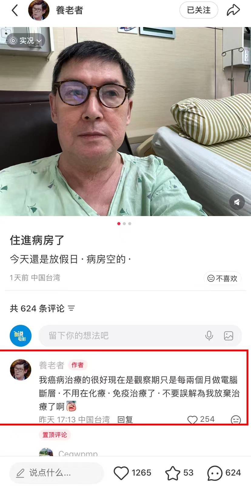 网友都替郭爸爸开心,因为之前他担心还会安装支架,过去他患上肺癌,心血管问题也不小,但目前看来他的心血管不用太担心。