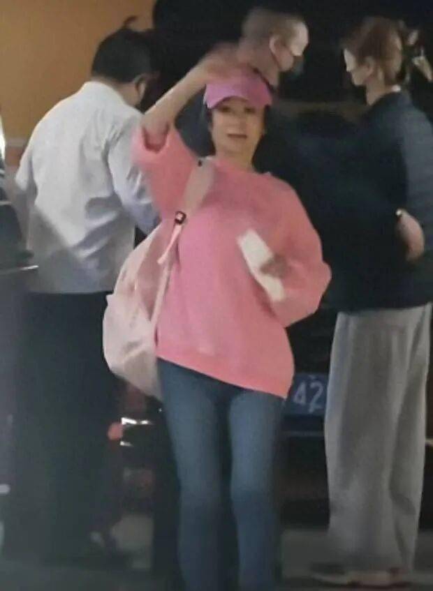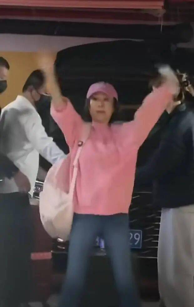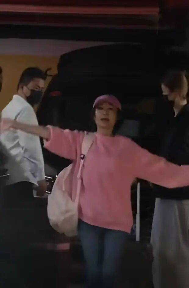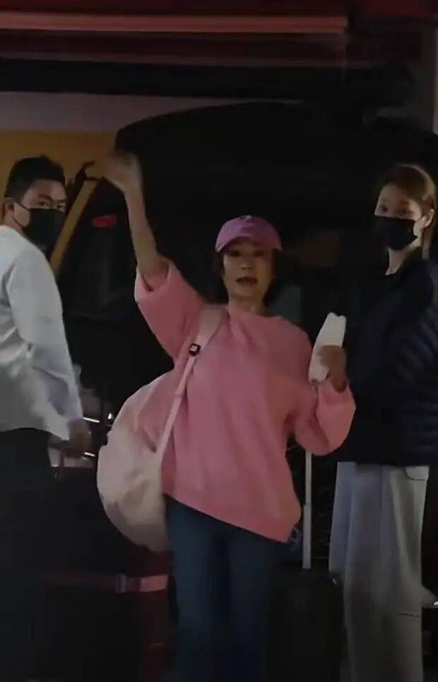 潘迎紫迈步前行,粉衣造型超减龄。