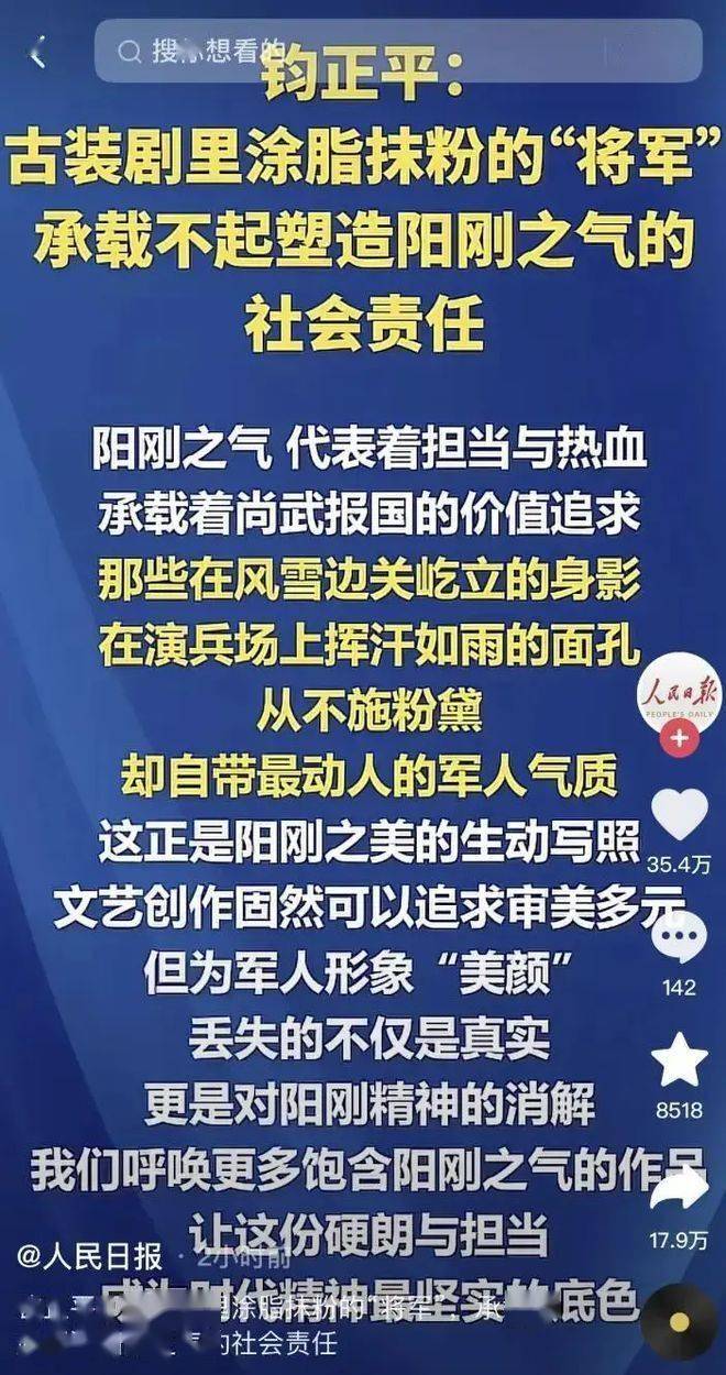 更魔幻的是,之前解放军新闻传播中心主管的官方账号钧正平,曾发文批评 “古装剧里涂脂抹粉的‘将军’,承载不起塑造阳刚之气的社会责任”,结果大批张凌赫粉丝没看清账号身份,直接冲进去谩骂控评,直到知道是官方账号才慌忙删评跑路。