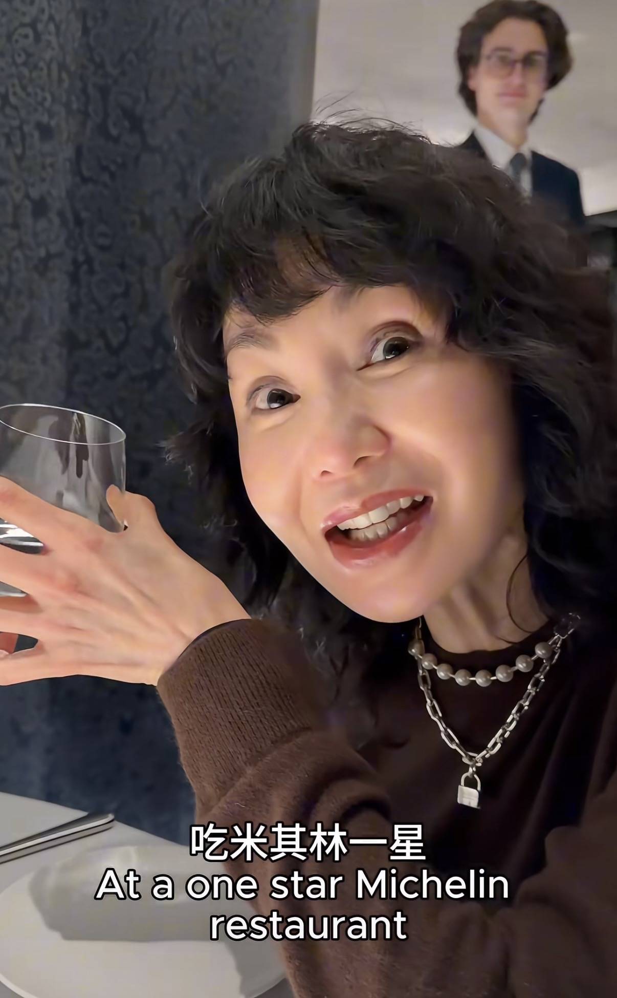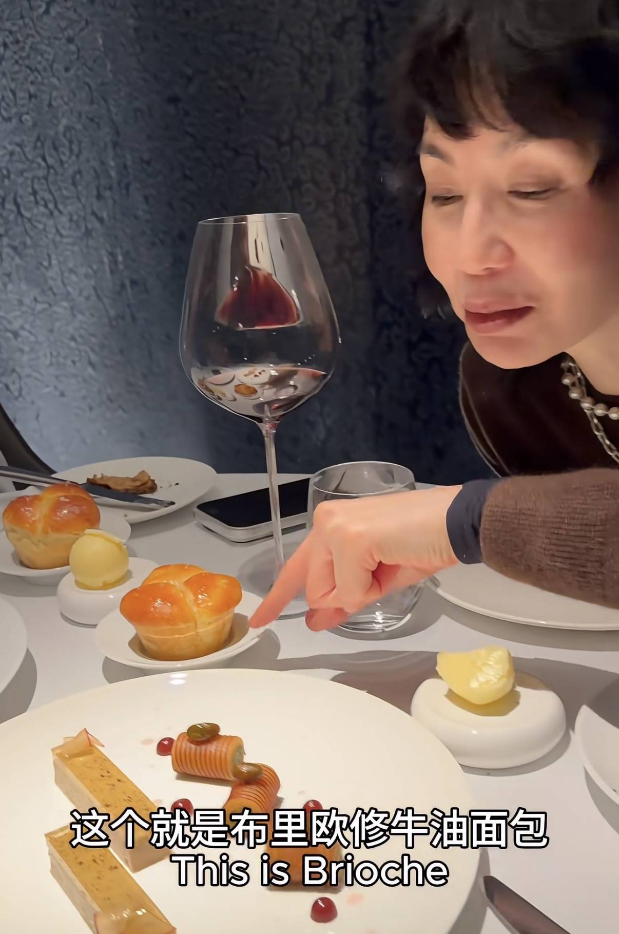 给朋友庆生,他们选择在米其林一星餐厅吃漂亮饭。张曼玉喝了红酒,还点了很多美食,有摆盘好看的蟹肉、还有龙虾、以及烤鸭、牛排、面包、甜品等等。