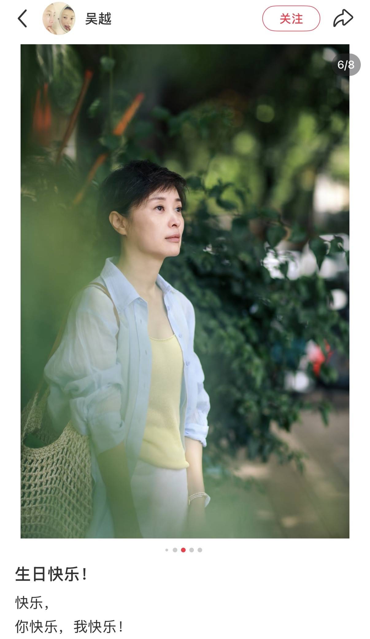 可生活里,吴越是那么的柔软、平静。作为独生女,她撑起了父母的晚年生活。感情上的不顺遂,让她学会了随遇而安。如今就连生日,也过得简单低调。