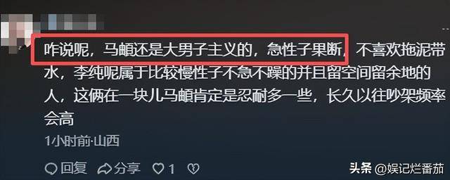马頔大男子主义、强势,李纯性格稳