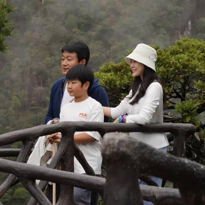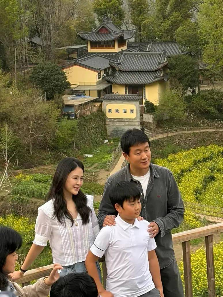 照片中,佟大为身穿蓝色外套,打扮低调,关悦头戴白色渔夫帽,身穿白色上衣,出游打扮简约大方,看起来很有气质。儿子佟俊言身穿白色t恤,打扮简单清爽。一家三口在景区拍合影留念,同框画面温馨有爱。