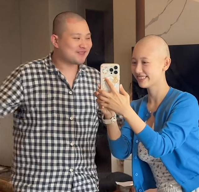 单从这一形象就不难推断,她的癌症并没有如网友推断的那样轻松,反而是伴随着时间的推移以及化疗,变得愈发难以承受。为了接下来的化疗,她不得不将自己的头发剃掉,好在有老公的暖心安慰。