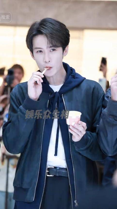 活动现场,工作人员递来一支冰淇淋,檀健次接过来后,便直接吃了起来。