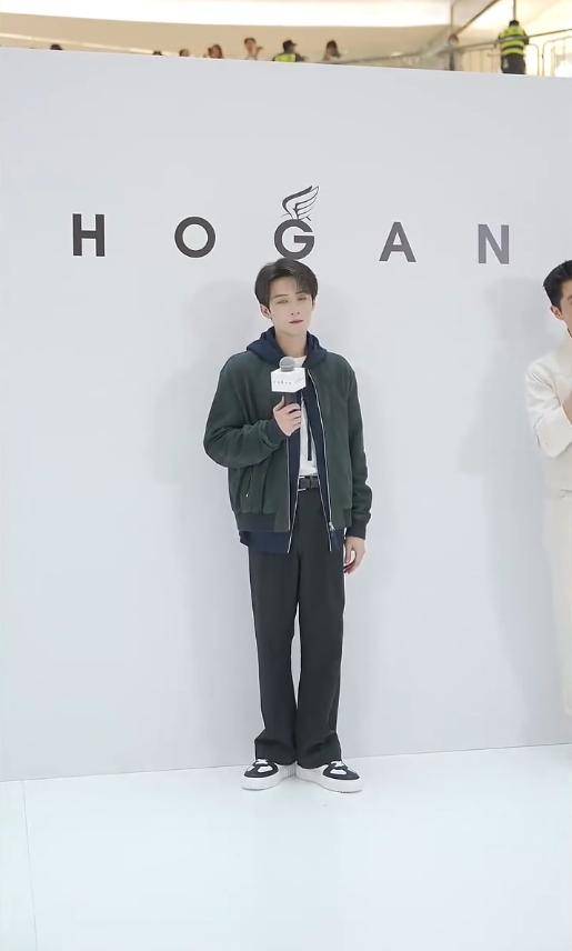 当天他穿了一身深色的简约穿搭,上身是修身的短款外套,下身搭配同色系长裤,看似简约大气,却难掩身形的单薄。