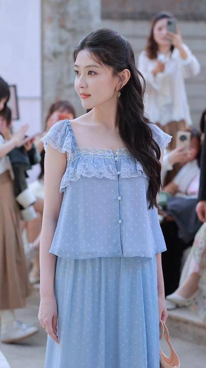 这次上海的时尚大秀,梁洁的状态依旧没让人失望。她穿了一条蓝色点点雪纺裙,半扎着淑女辫整个人看起来清爽又大方。