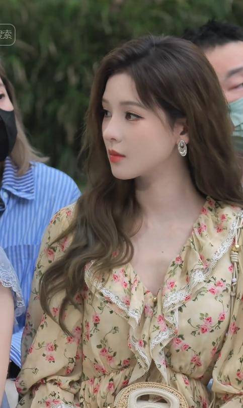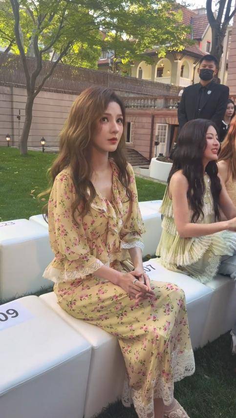 这次参加上海大秀,她穿了一条黄色小碎花裙子,搭配大波浪卷发,妆容精致到每一根睫毛,站在人群中,一眼就能被她吸引,气场确实很足。