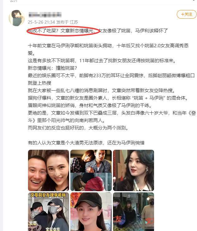 前两年,文章被曝新恋情,由于女友被指酷似姚笛,还惹来了很多网友的负评,不过两人的感情并没有受到影响,之后再次被遇到约会,仍然是同一个人。