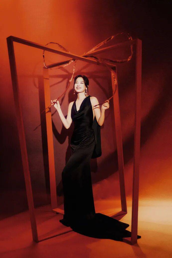 辛芷蕾穿着无袖的黑色长裙,她俏脸成熟妩媚,侧身微笑很可人,露出白皙的手臂,曼妙的身材曲线,还是很性感撩人的!