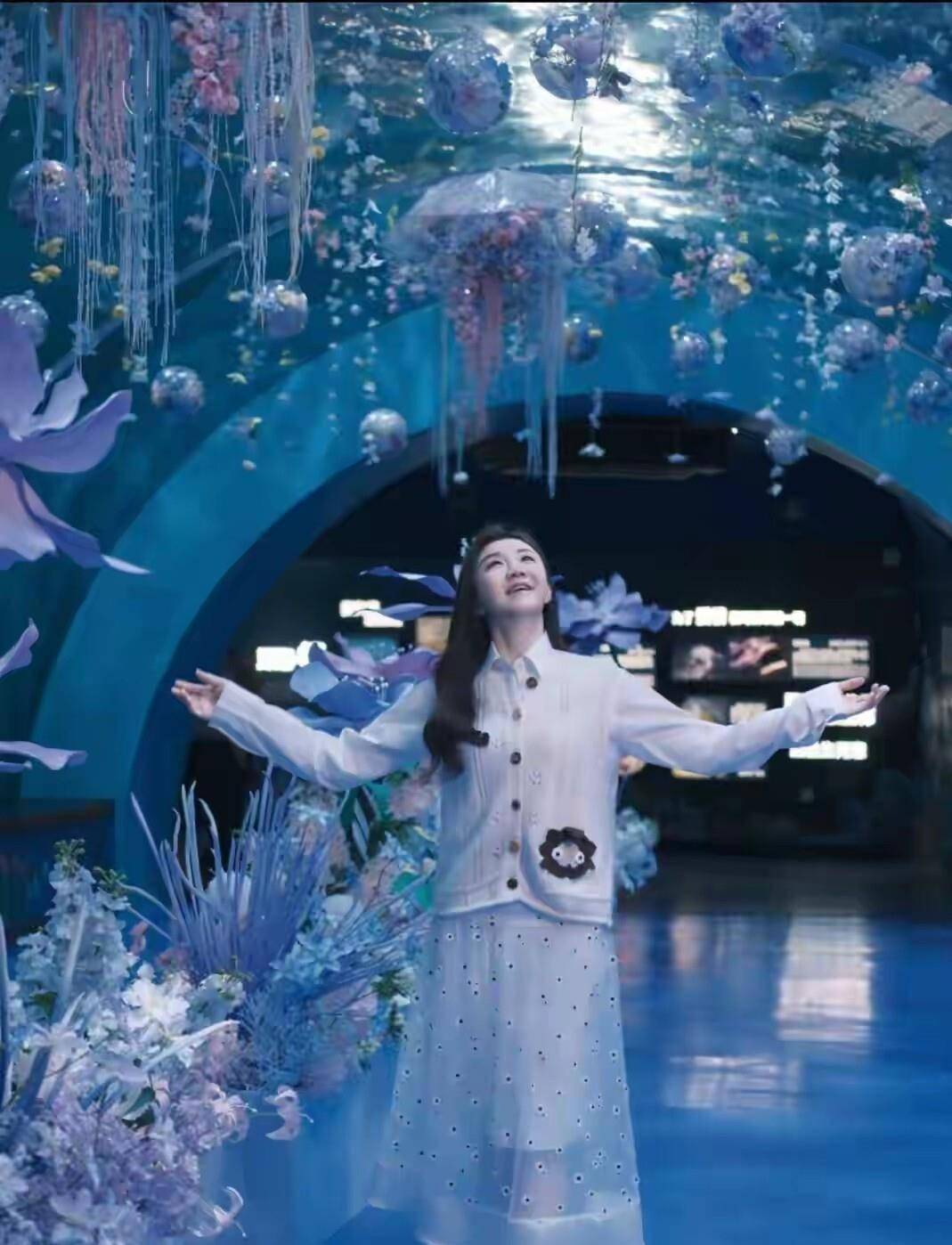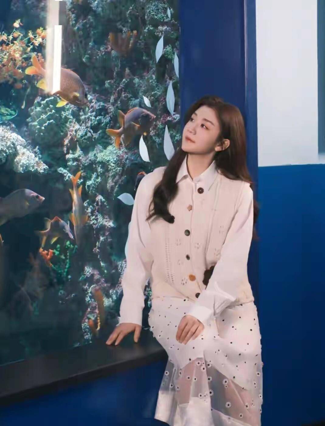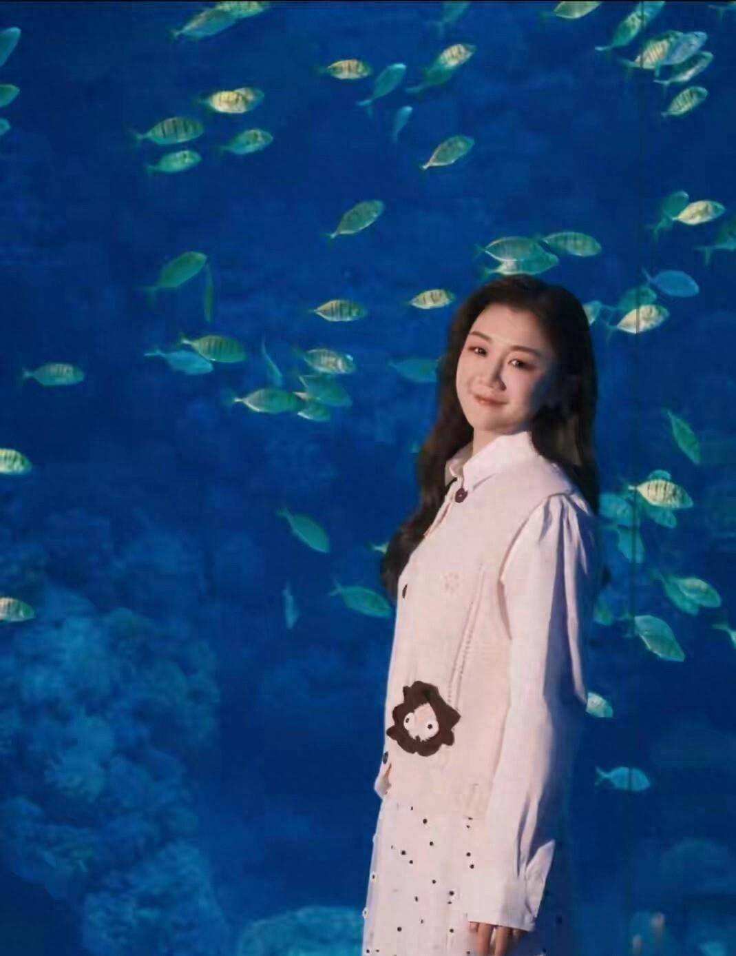 她穿着白色的针织衫和长裙,头发烫成了温柔的波浪卷。没有运动服,没有挥拍时凌厉的眼神。 站在蓝得发亮的海水背景前,她对着玻璃外的鱼群微笑。 有游客认出了她,拍下视频发到了网上。