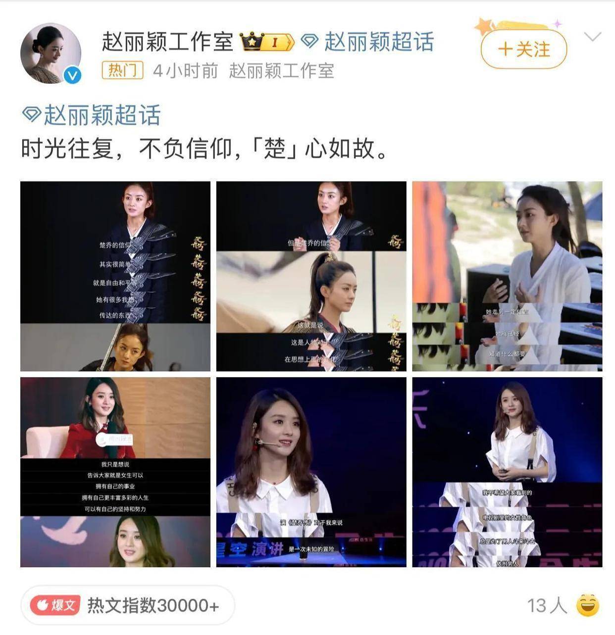 4月10日下午五点,赵丽颖工作室发了一条微博。 内容很简单,是九年前《楚乔传》播出期间,赵丽颖的一段幕后采访截图。 配文只有十二个字:“时光往复,不负信仰,「楚」心如故。&