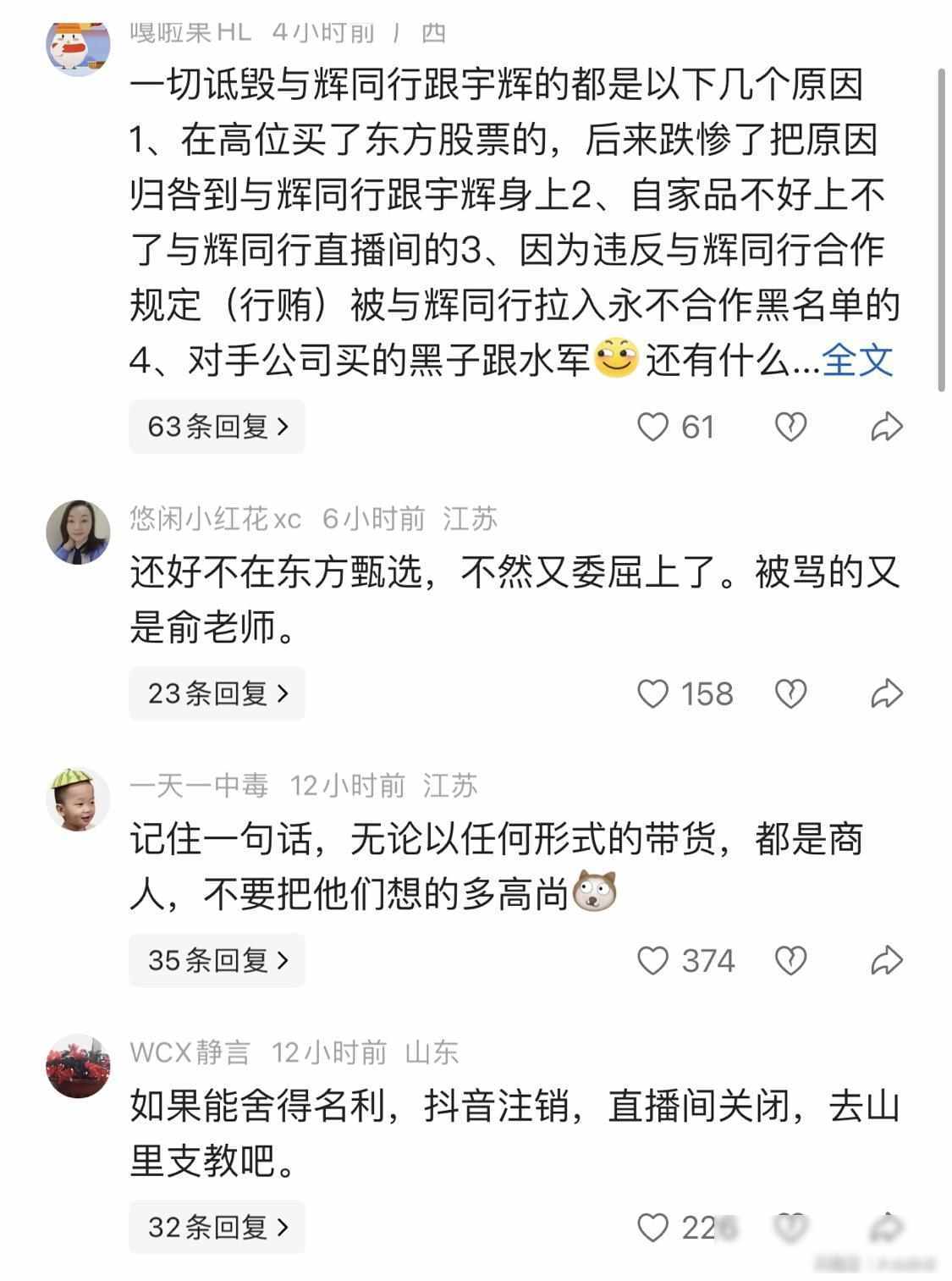 还有网友把这件事联系到俞敏洪身上,说“挨骂的总是老俞”,这说明很多人还不知道“与辉同行”已经独立运营了,也有人开玩笑讲“要不注销账号去支教吧”,听起来像调侃,其实透露出一种失望:大家本来相信他不只是个卖货的人,结果发现他也绕不开流量逻辑。