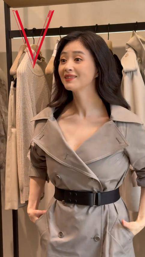 当天她穿了一件该品牌的驼色长款风衣,看着版型简约大气,本以为能撑起气场,可上身效果却不尽如人意。