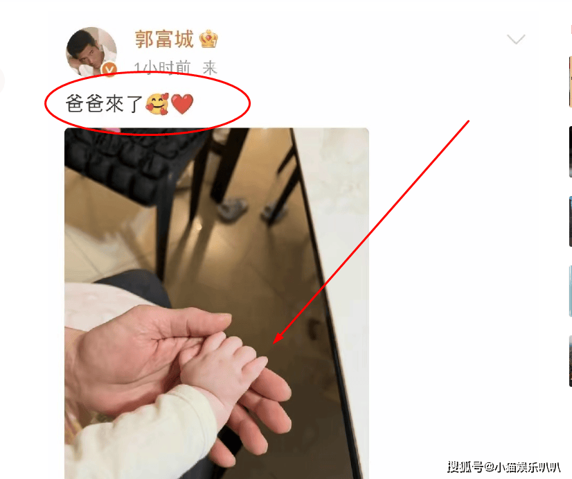 郭富城发了一条动态,五个字,配了一张图。五个字是“难掩喜悦”,图是一只宽厚的手掌,轻轻包着一只软乎乎的小手。暖黄的灯光下,那只小手像刚剥了壳的鸡蛋,被稳稳托在掌