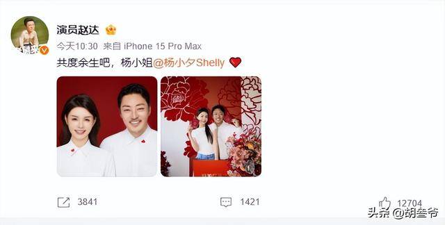4月11日上午,娱乐圈突然传来一桩低调又甜蜜的喜事。演员赵达在个人账号晒出结婚证,配文“共度余生吧,杨小姐”,圈外女友杨小夕同步回应“共度余生吧,赵先生&rdqu