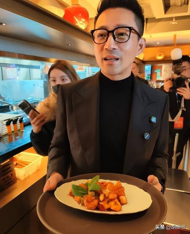 当天他穿着正式西装,全程忙前忙后,不仅上台致辞,还亲自给顾客端菜、讲解菜品,一点老板的架子都没有,特别接地气。