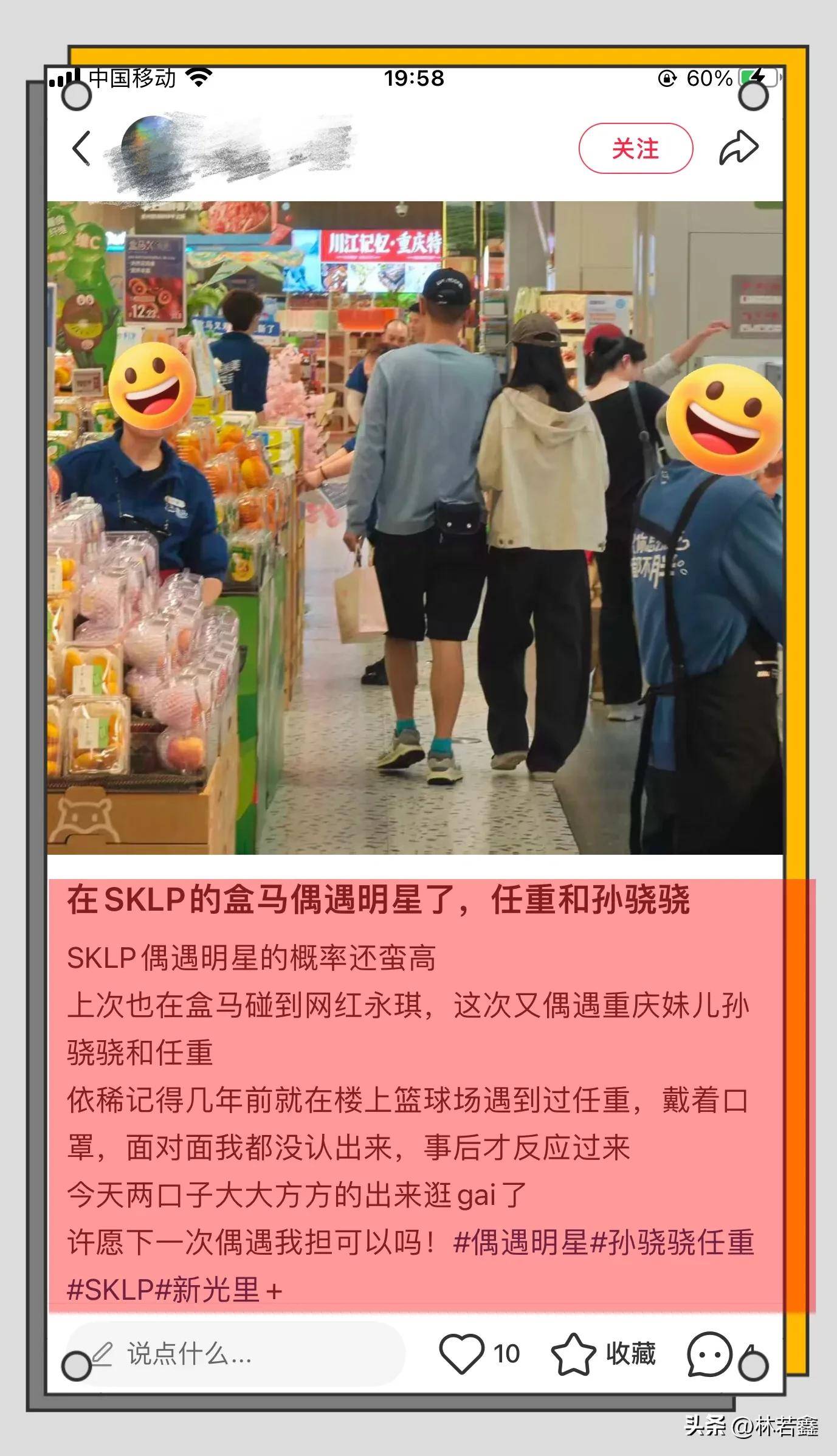有网友在网络上分享了一张照片,让人惊喜的是,他们在盒马生鲜竟然偶遇了任重和孙骁骁。这种意外的相遇让人不禁感叹,缘分真是奇妙无比!