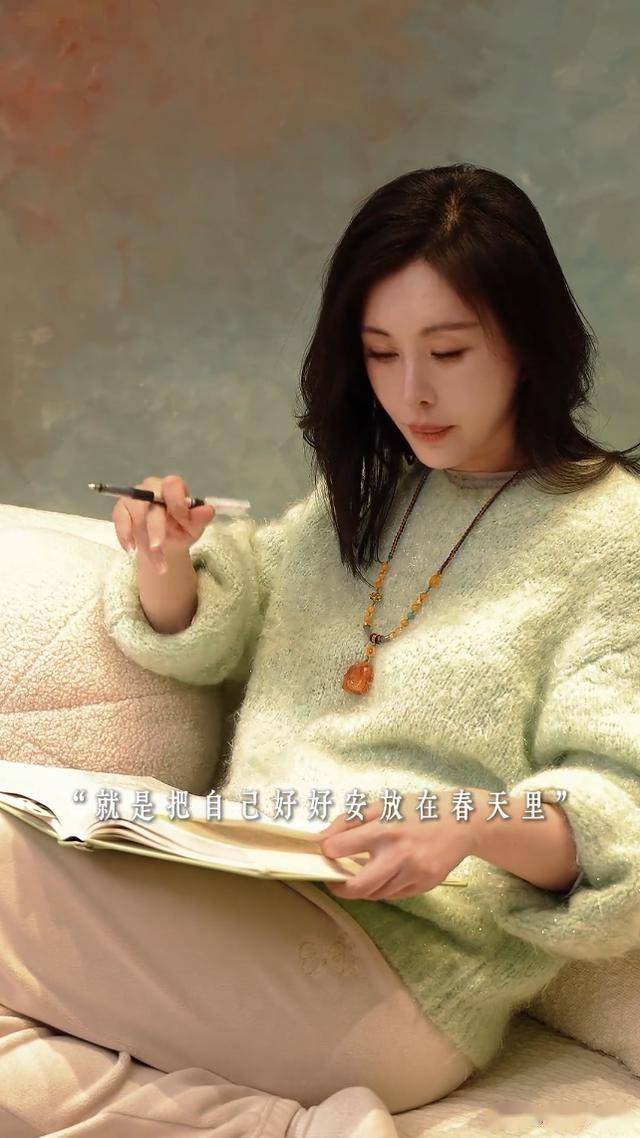 视频最后,她瘫在柔软的大沙发上看书,形容自己是吃得安稳、住得舒心,把自己好好安放在春天里。
