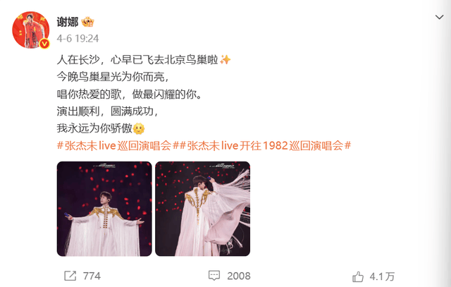 4月10日,谢娜在个人社交平台发布了一条让人又好气又好笑的动态,在线“控诉”自家的拼命三郎张杰,并喊话:请问有人可以管一下吗?原来是因为张杰在鸟巢连开8场演唱会,好