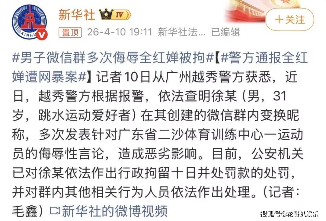 此前有人专门组建VX群,在群里肆无忌惮发布恶意诋毁、侮辱全红婵的言论,对着这个为国争光的十几岁小姑娘大放厥词,字字句句都充满恶意,看得无数网友怒火中烧。一个凭实力拿下奥运金牌、为国家赢得无数荣誉的运动员,平日里刻苦训练、拼尽全力赛场夺冠,私下里单纯又懂事,却要承受这般无妄的网络暴力,实在让人心疼不已。