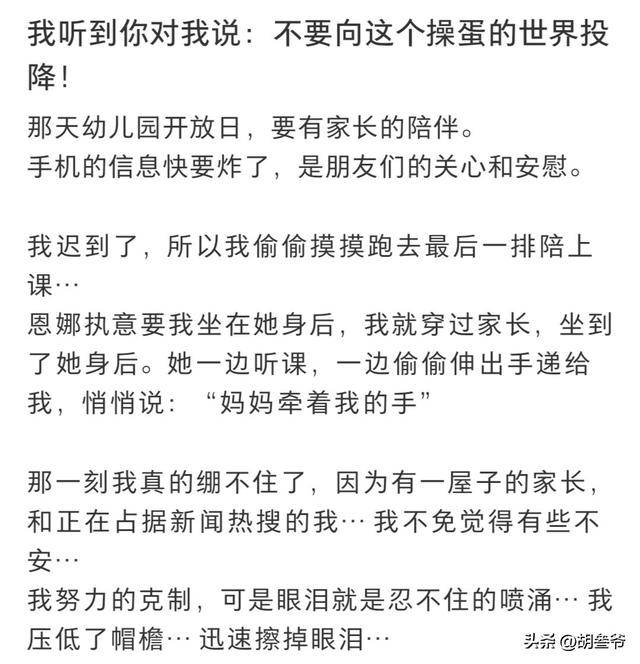 文章里她没有骂丈夫,没有撕第三者,全程走温柔治愈路线,讲了一段特别戳人的经历。