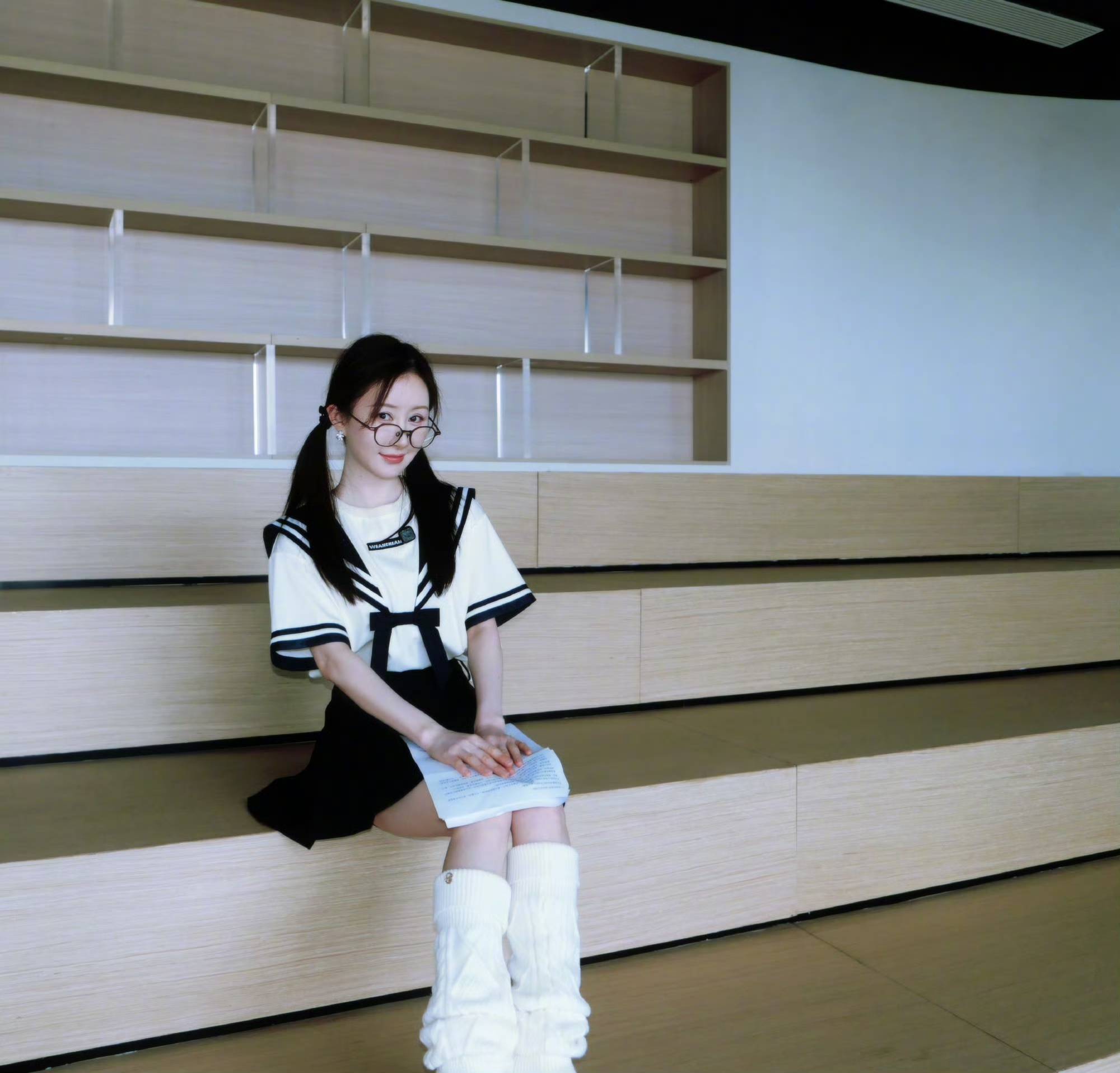 学生装的舒畅更是看起来毫无违和感,带着眼镜的她看起来青春又单纯,时间仿佛真的在她时尚凝固,一点衰老都没有,