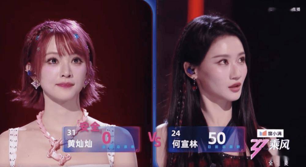 和她PK的是黄灿灿,但节目为了搞悬念,具体票数没公布出来,就宣布黄灿灿胜出。当时,黄灿灿有点懵,何宣林的表情管理也失效了。