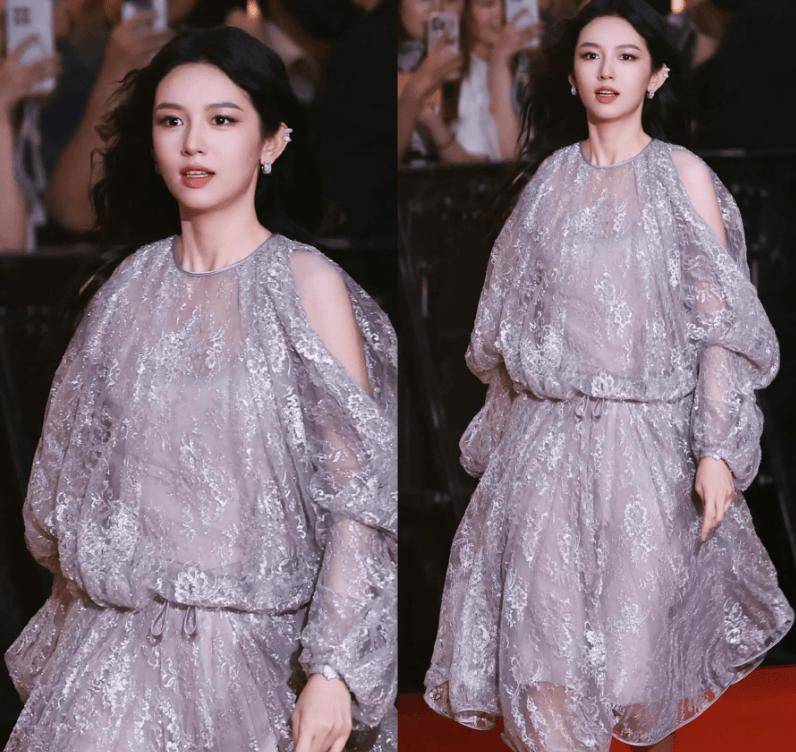 演员周也穿了件迪奥裸色蕾丝纱裙,长发微卷的造型清新灵动,走上阶梯时的回眸杀,被网友调侃 “像从漫画里走出来的女主”,采访时她还特意展示了手袋上的蝴蝶结设计,细节控属性拉满。