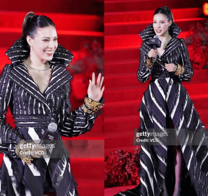 当晚的明星阵容更是 “神仙打架”,体育圈、时尚圈、娱乐圈的顶流们集体打卡。超模贺聪一袭香奈儿长拖尾红裙,踩着高跟鞋走阶梯的样子,活脱脱把红毯走出了高定秀场的气场;