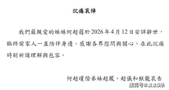弟弟何猷龙和她年龄相近,何超蕸是家族之中最低调的存在,如今传来她离世的消息,令人无法相信。