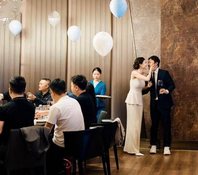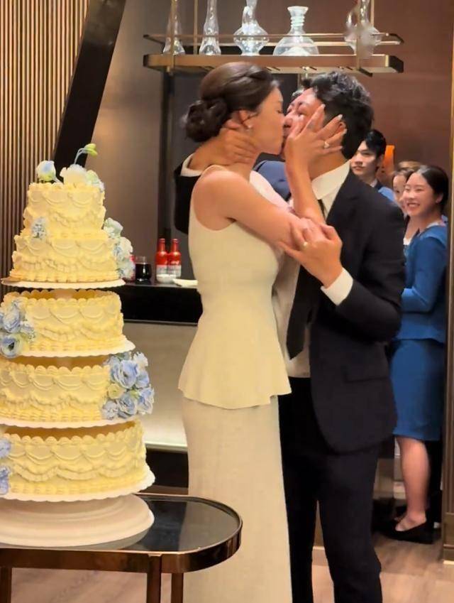 二人切蛋糕之前,在亲友面前激情热吻,夫妻感情也太好了吧。