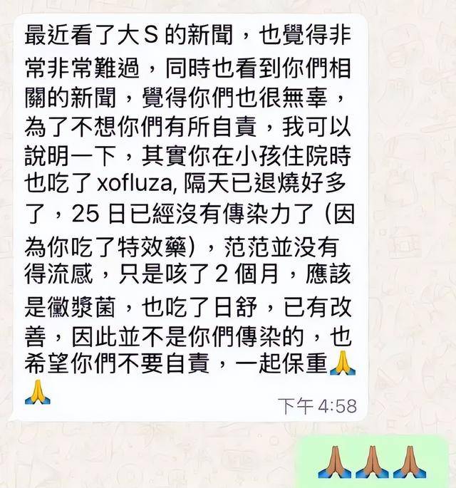 因为范玮琪那段时间也一直在咳嗽,就有网友怀疑是她把病毒传染给了大S,为了自证清白,范玮琪甚至不得不晒出了和医生的聊天记录。