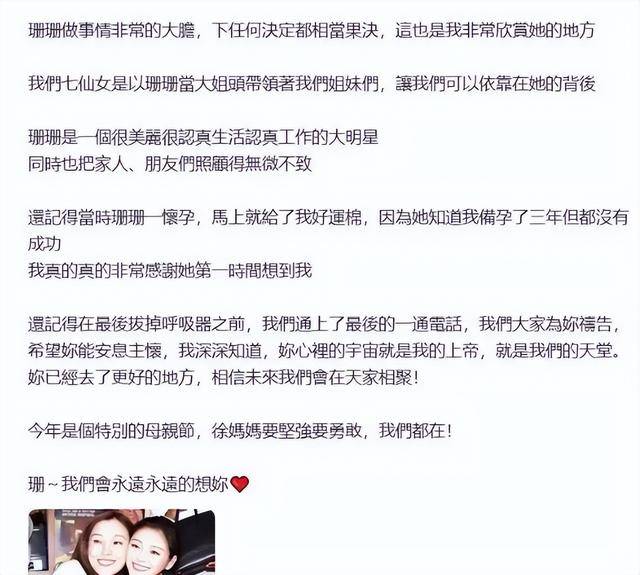 事情还没完,到了同年5月10日,范玮琪又发了一篇长长的悼念文章,深情回忆了她和大S从认识到成为朋友的点点滴滴。