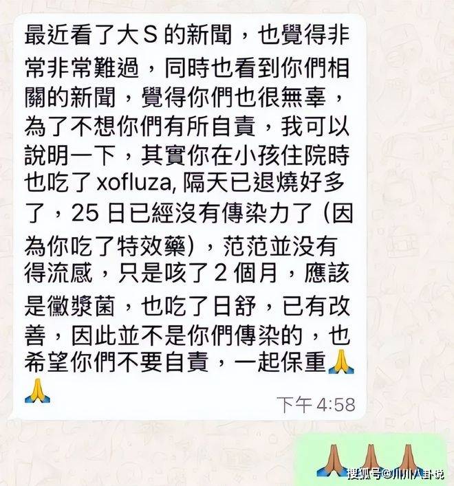 大S去世后,她咳嗽被怀疑传染病毒,晒聊天记录自证;