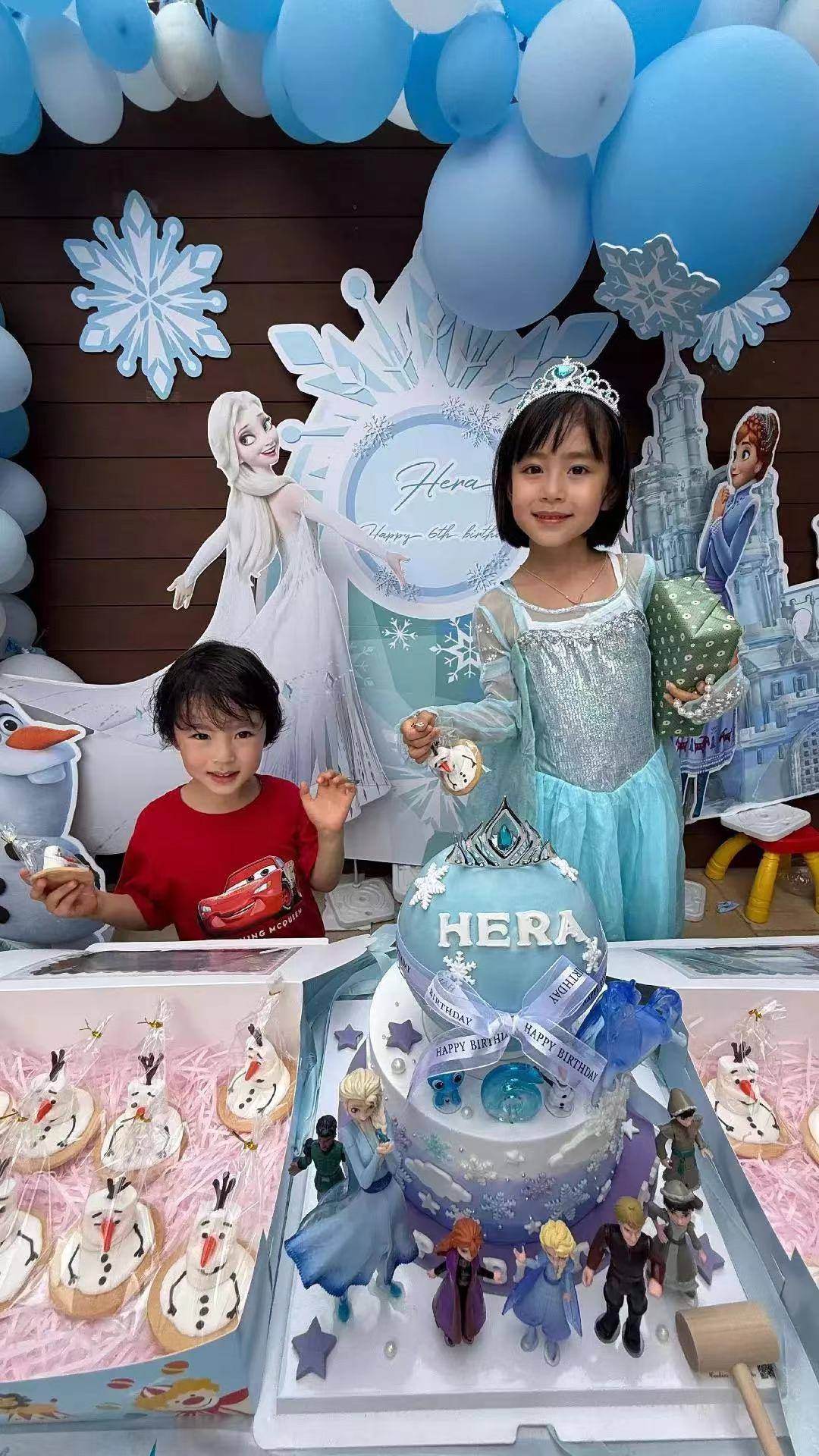 2026年4月12日,杨怡(现名杨茜尧)在社交平台晒出全家福,为女儿小珍珠庆祝6岁生日。照片中,小珍珠身穿蓝色爱莎公主裙,头戴皇冠,甜美可人,宛如从童话中走出的小公主;弟弟Eden则身穿红