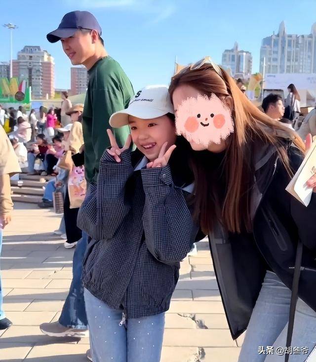 有路人认出小酒窝后上前请求合影,小姑娘特别大方,主动对着镜头比耶,笑容甜甜的。
