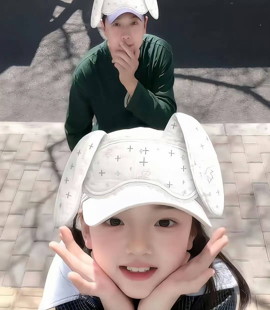 父女俩还拍了搞怪的自拍,两个人都用了同样的模版,一个小兔子耳朵的萌拍,显得高云翔都年轻了不少。