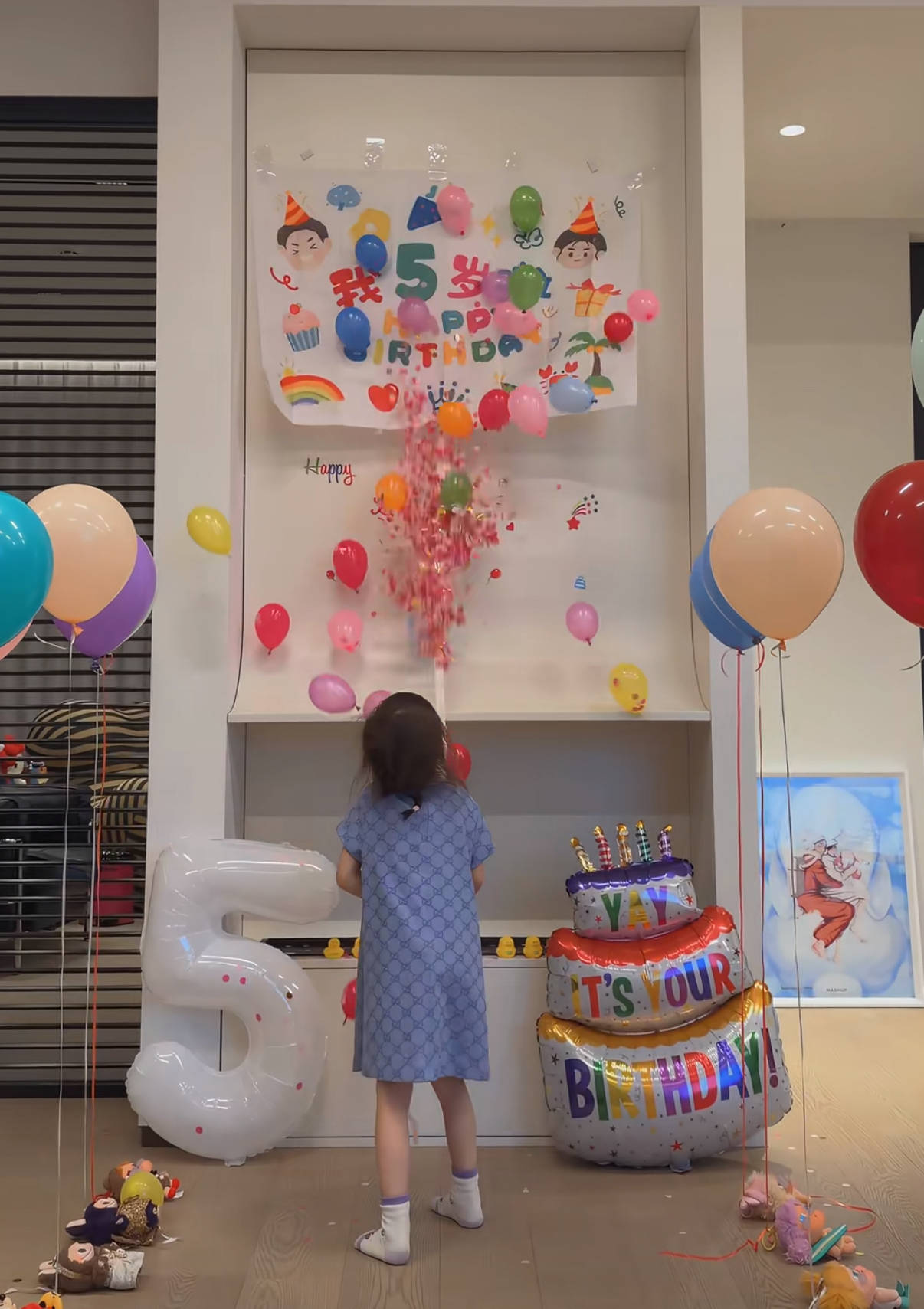 王灿和杜淳给小蛋饺准备的生日派对很惊喜、也很用心。小蛋饺轻轻拉下绳子,就会有好多小气球飞起来,这一幕太感动了。
