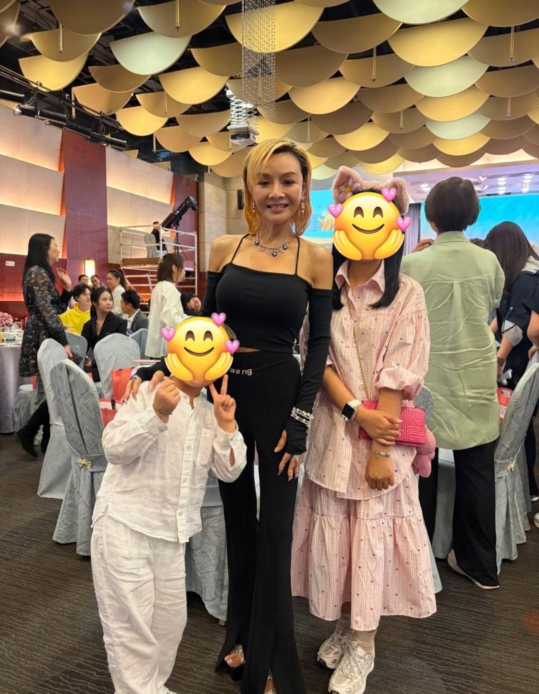 与温碧霞同岁的叶子楣则以黑色装亮相,同样保养得很好。看她的脸和身形,哪看得出是即将年过六旬的人呢。