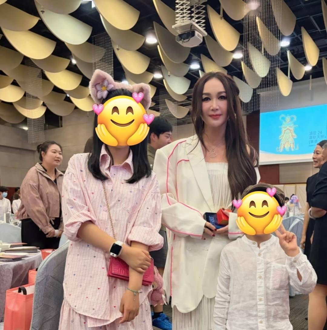 59岁温碧霞留着标志性的发型,一身白色装示人,看起来精致又漂亮。