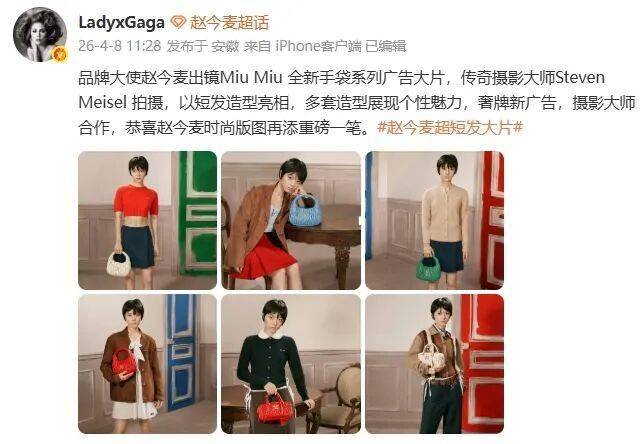 赵今麦又又又被群嘲了。最近,Miu Miu发布了一组2026手袋广告大片,声称由传奇摄影师Steven Meisel掌镜拍摄。第一眼差点没认出来,这是赵今麦??一眼假的短发潦草地套在头上,妆容化