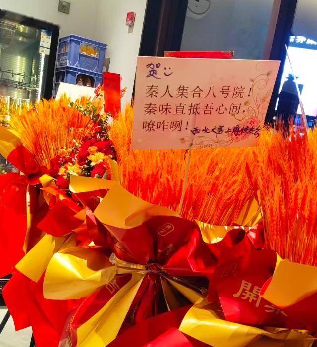 饭店门口的花篮有来自好友、西北老乡的,但都是素人的,除了于明加外就看不到其他名人。