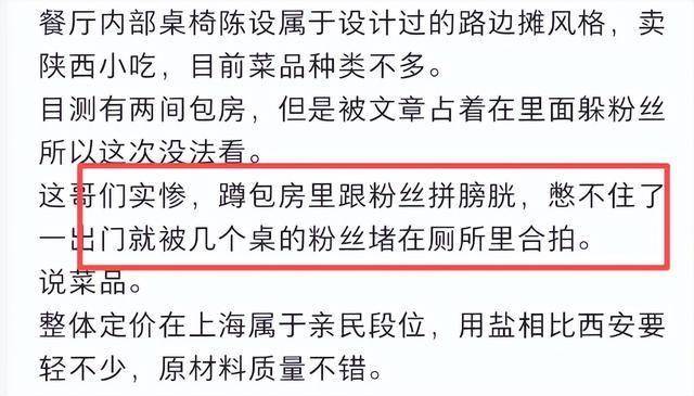 文章最近饭店开业的生意不错,连续三天都排着长队,还有数位食客开着百万级别的豪车来捧场。有网友还爆料他人气太旺,出现了窘况,连个上厕所的机会都没有,上厕所都要被粉丝逮住拍