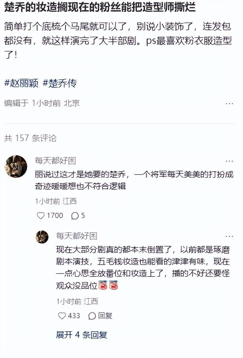 当年她的楚乔妆造也要正常得多,脸上几乎一点粉底液的痕迹都看不到,皮肤是正常的黄黑皮。