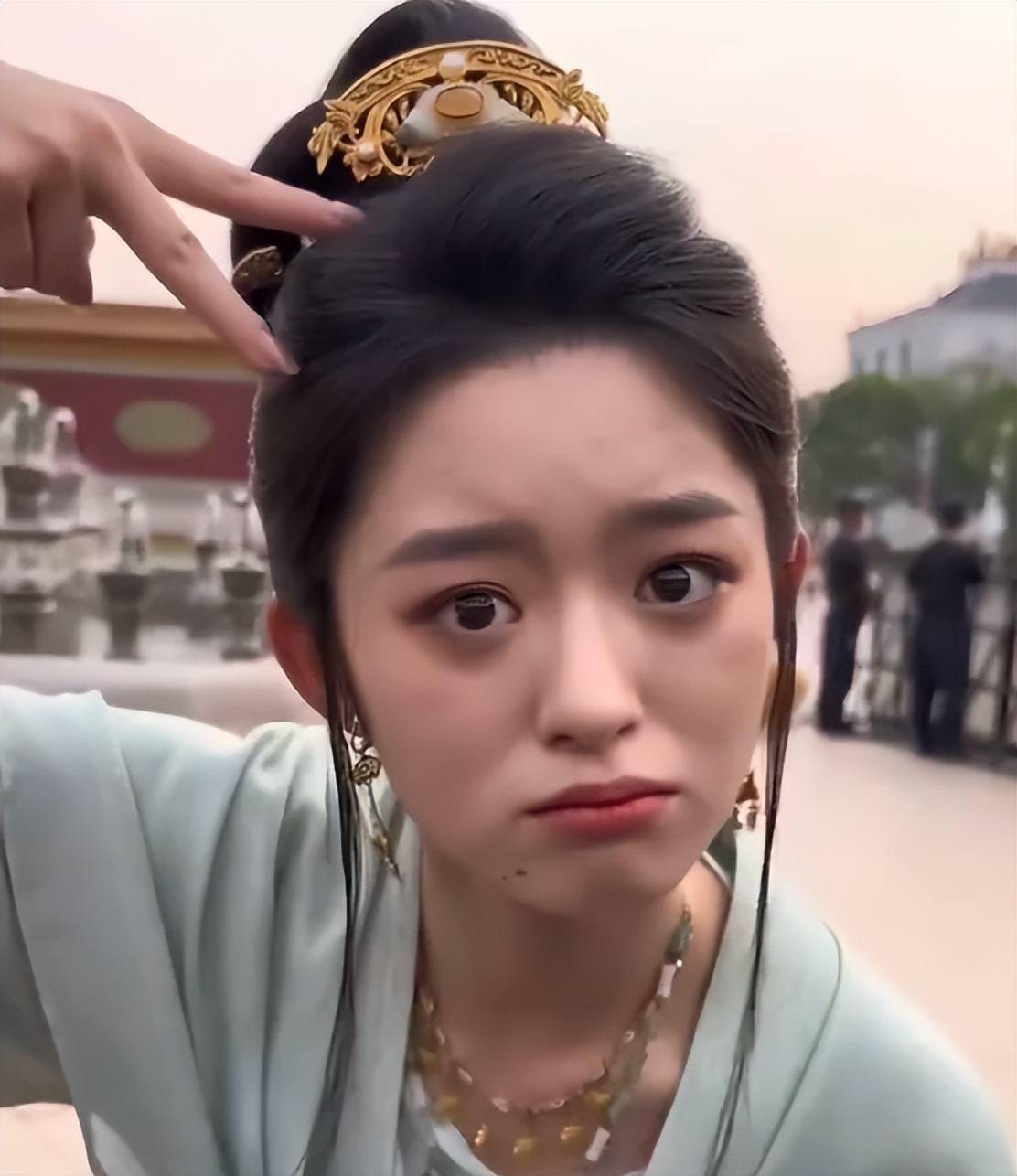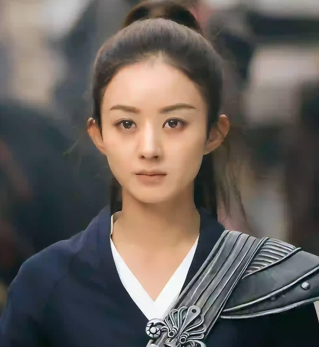 她本人并不是纯正的圆脸,脸型比赵丽颖更短,还有点方,但这张角度下却和赵丽颖的脸型更为相似。