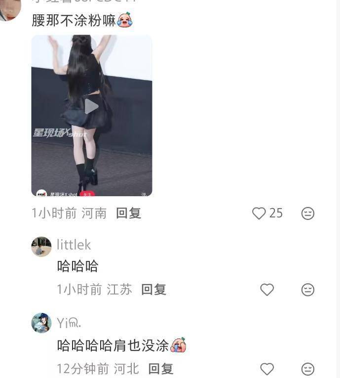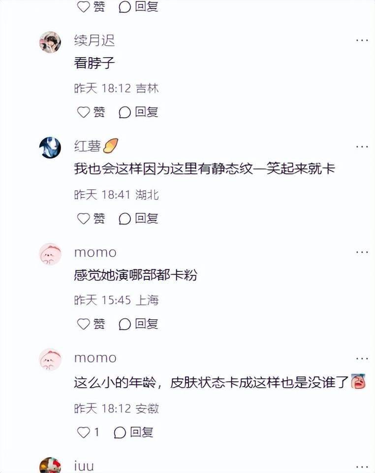 剧宣时她还因为一个小细节被网友挑刺,脸上的肤色和肩膀、腰间的肤色都不同色,粉底擦太厚,正常肤色被化成了冷白皮。